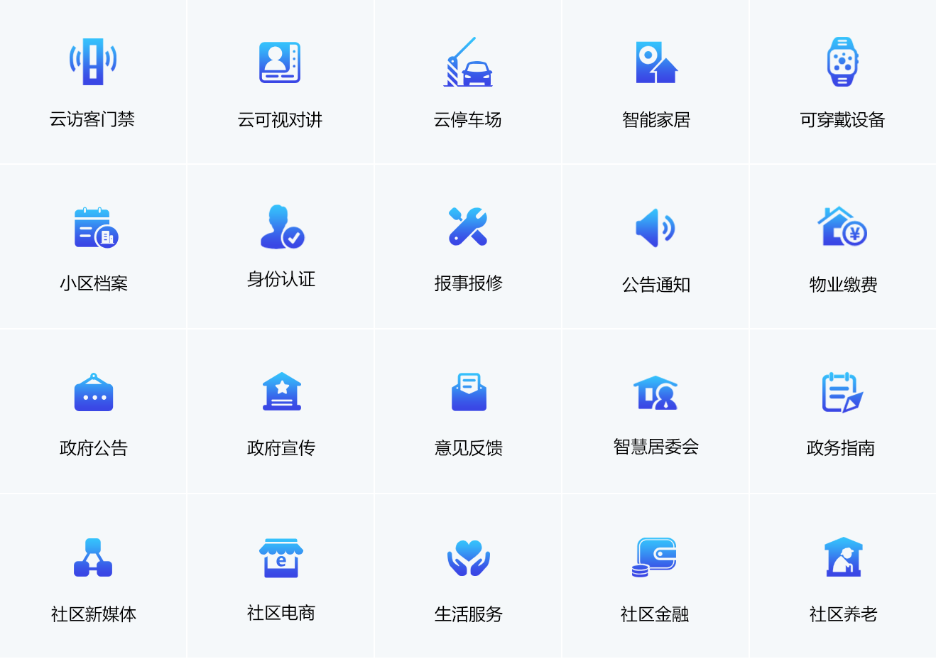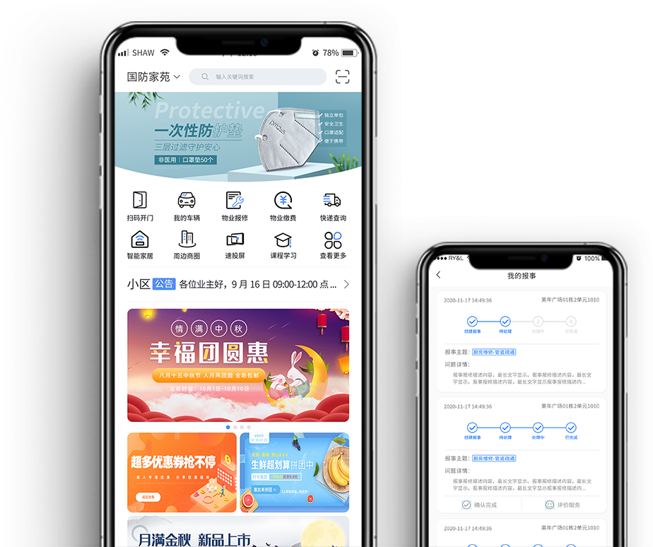 智慧社區生活平臺是連接物業(yè)、 居民、商家、便民資源于一體的聚合服務(wù)平臺, 以物業(yè)管理、硬件整合、社區O2O、鄰里社交、 公共服務(wù)等5大維度;APP+小程序+微信公眾號 +PC端4類(lèi)終端深入各類(lèi)應用場(chǎng)景,打造智慧社區生活。